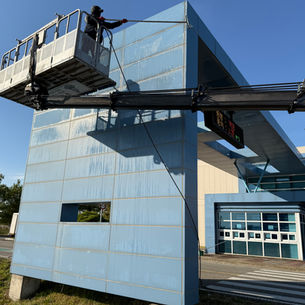 청소범위 : 화강석, 타일, 판넬, 천연대리석, 외벽소재를 고압 특수 세척장비로 청소합니다.